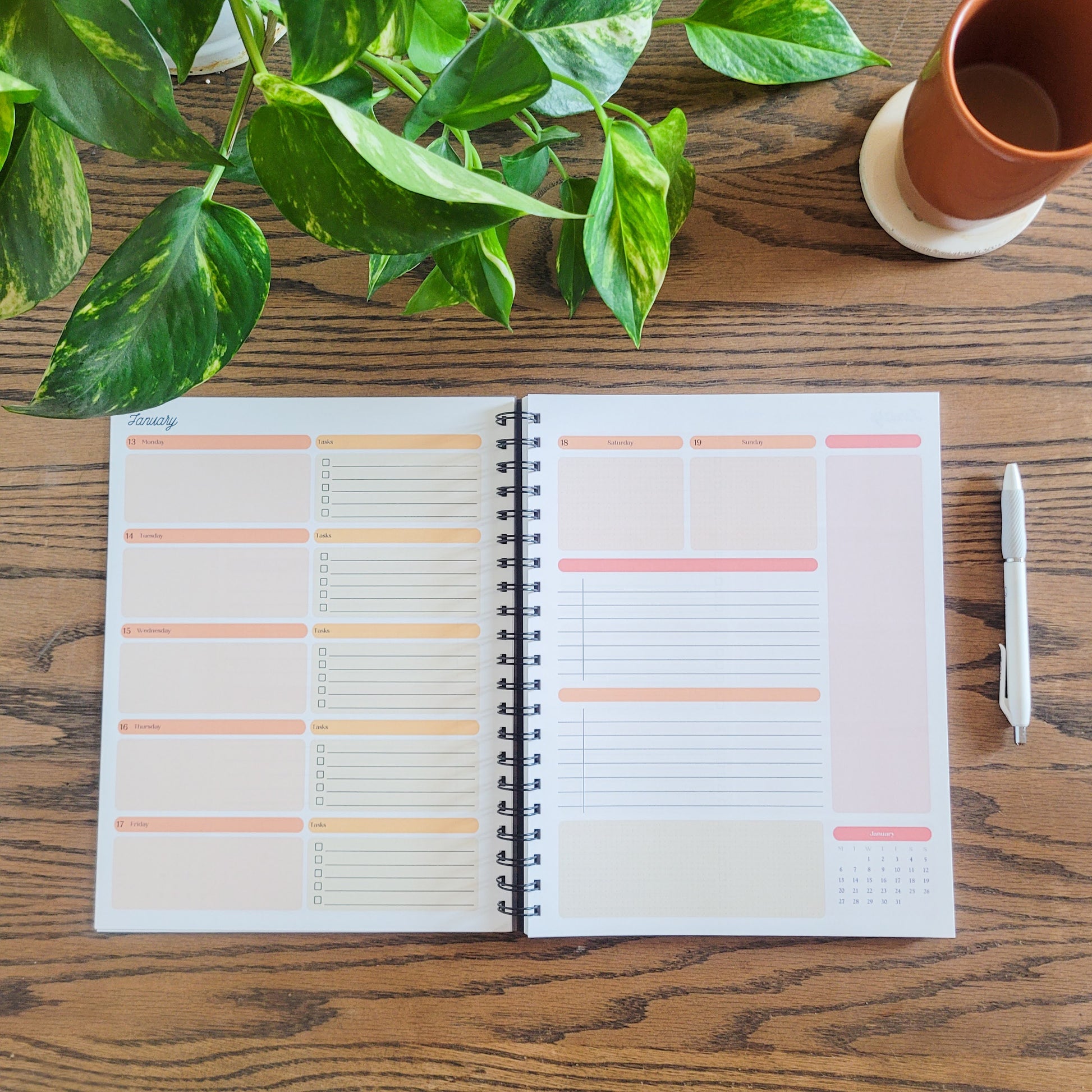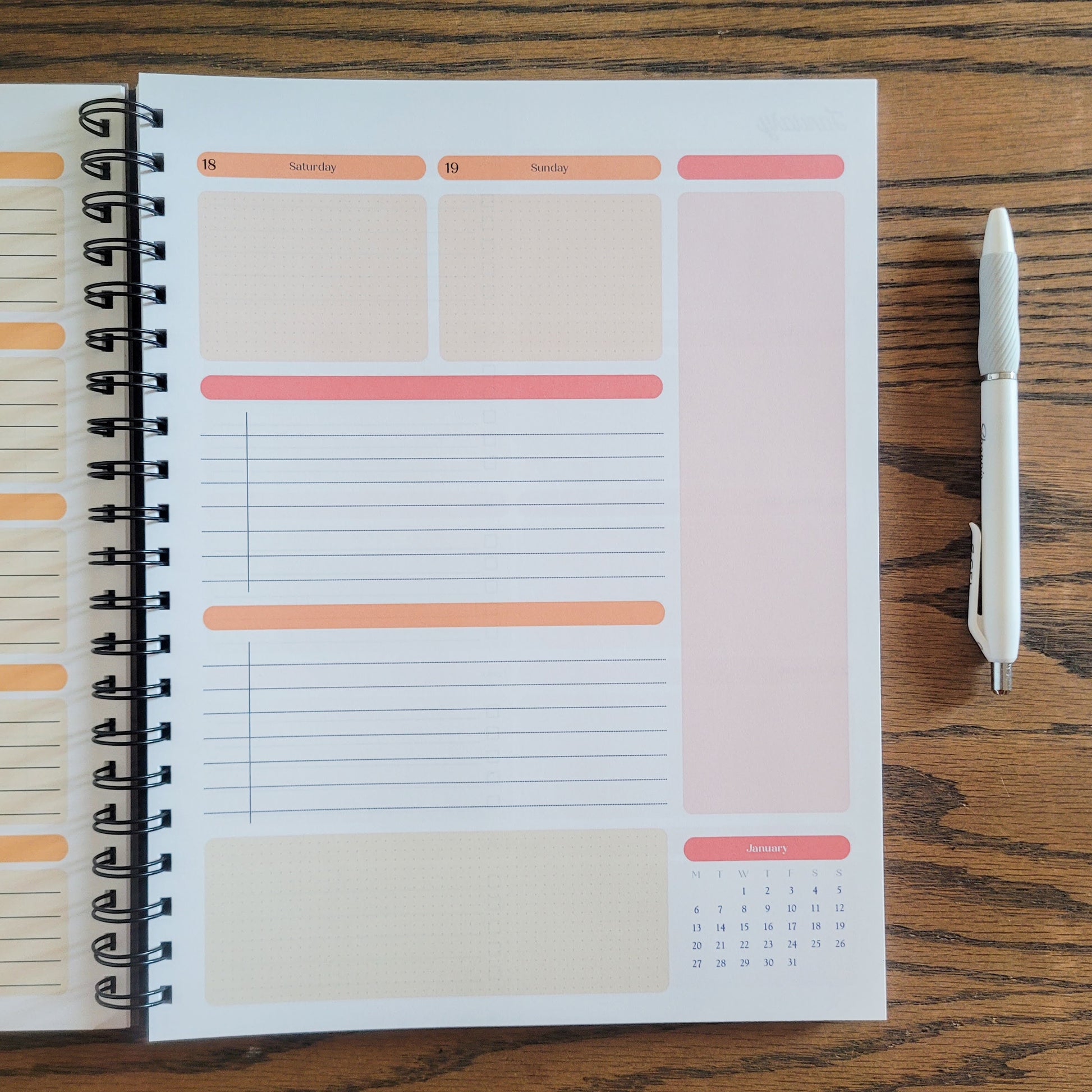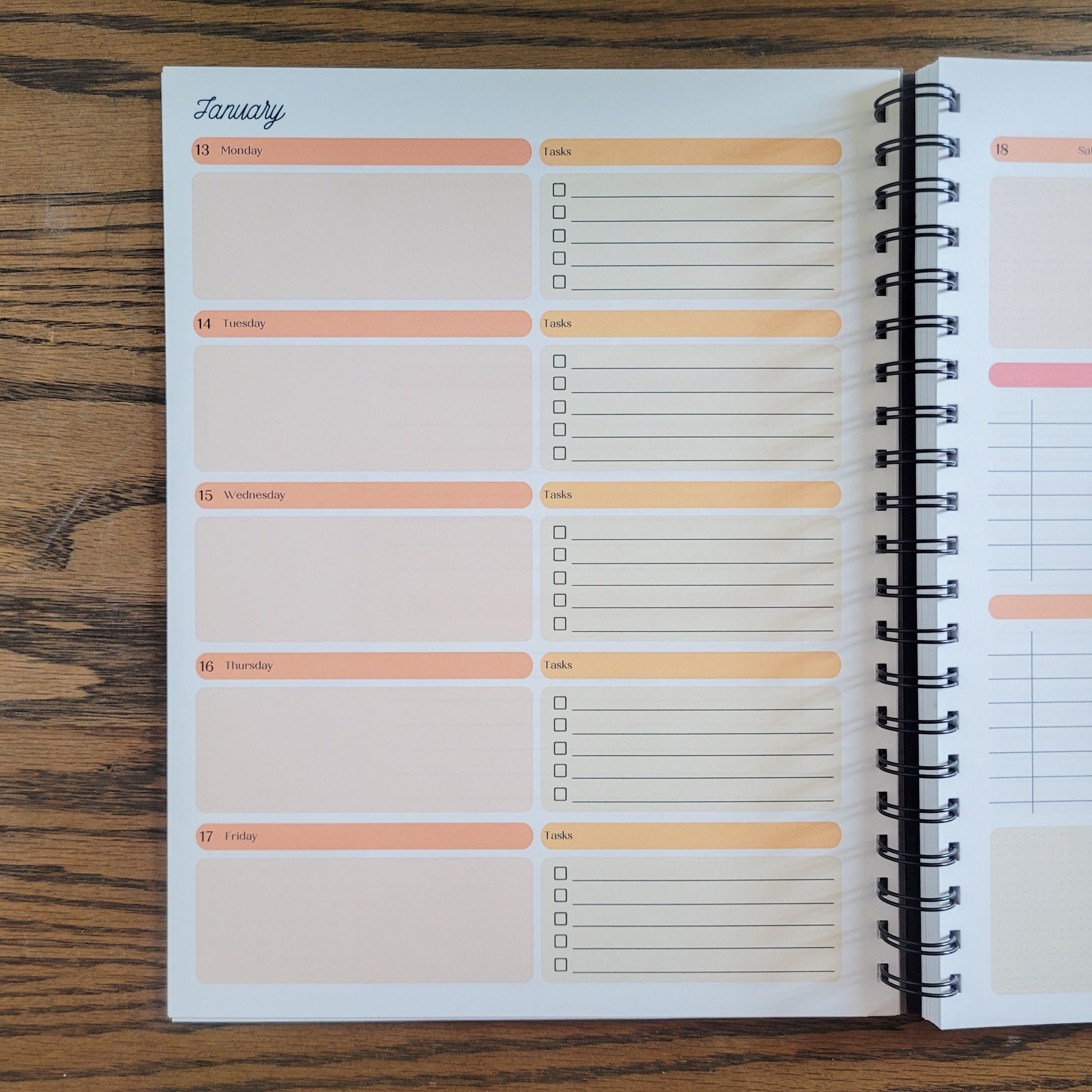 This student/task planner has all you need to organize your week, months, and year. With one full side for the week, and the other side for tasks and other you have plenty of space to tailor this planner to your specific needs.