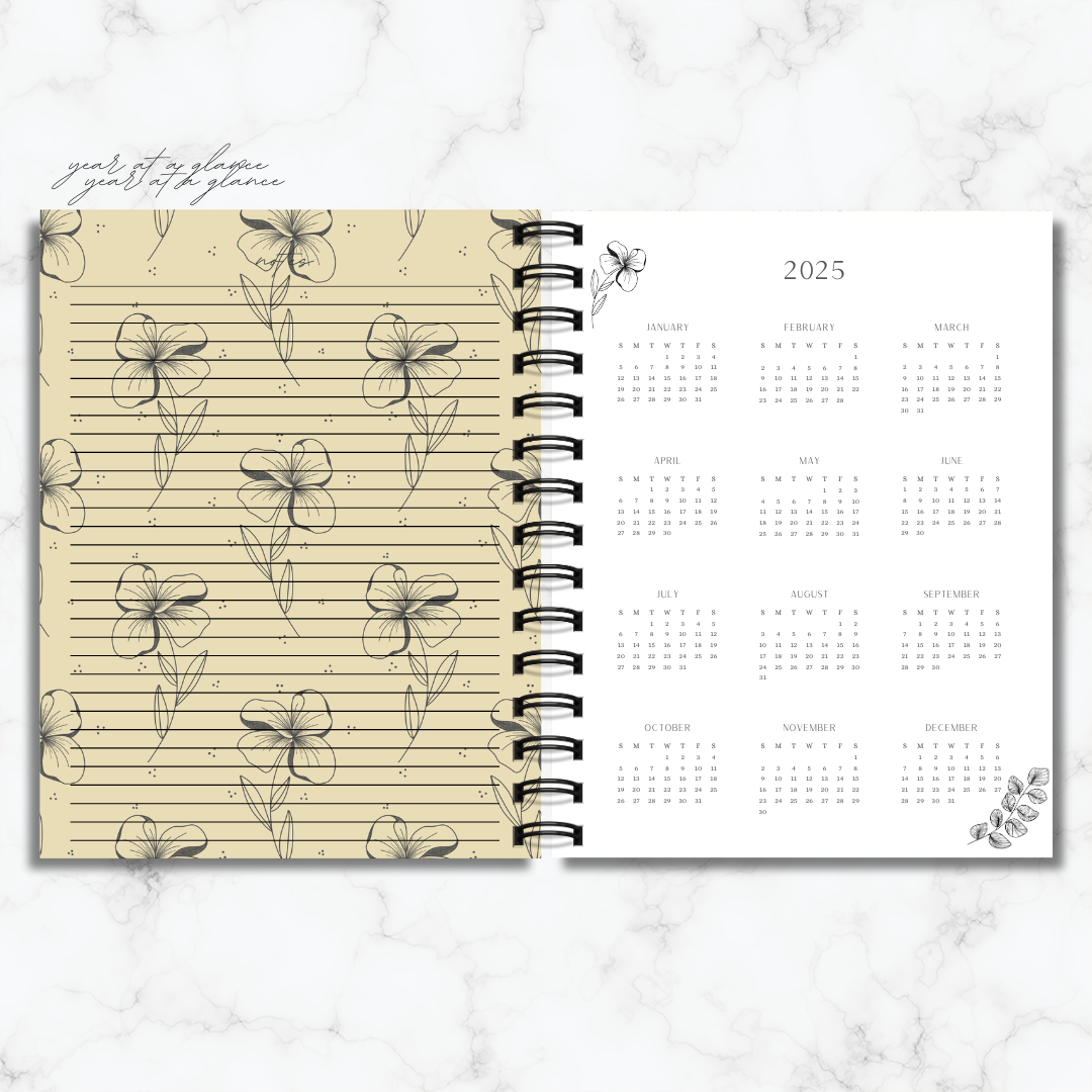 This neutral tone botanical themed 2025 planner is great for those who want a little more freedom in how they use their planner.