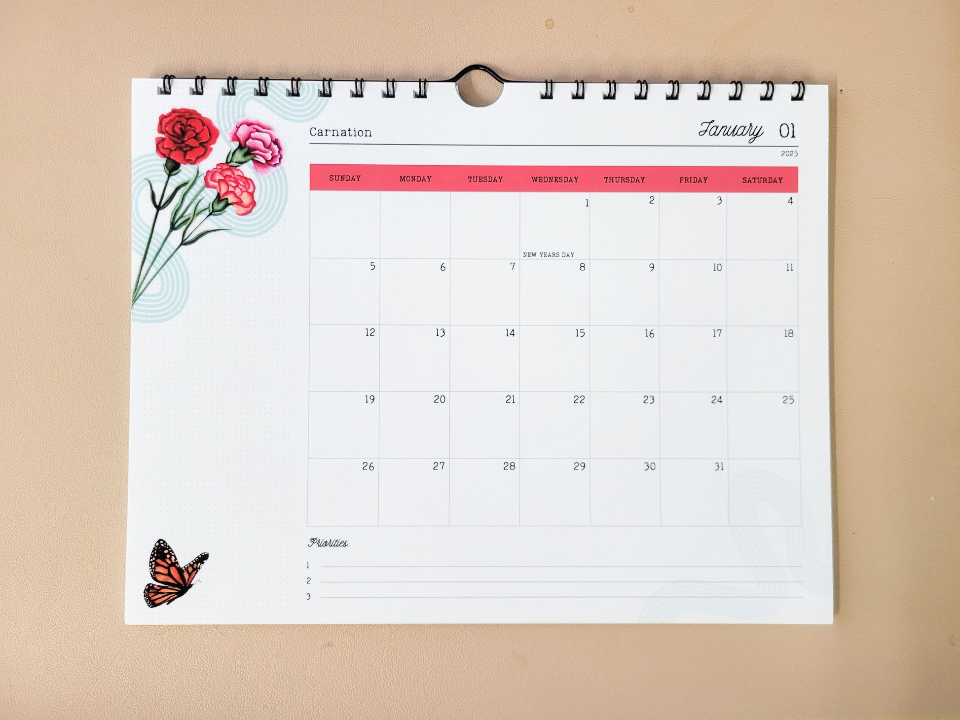 Start 2025 off organized with this Birth Flower Wall Calendar! Featuring each of the birth month flowers and space for notes and priorities. With a convenient calendar hanger, it's the perfect way to brighten up your space and stay on track.