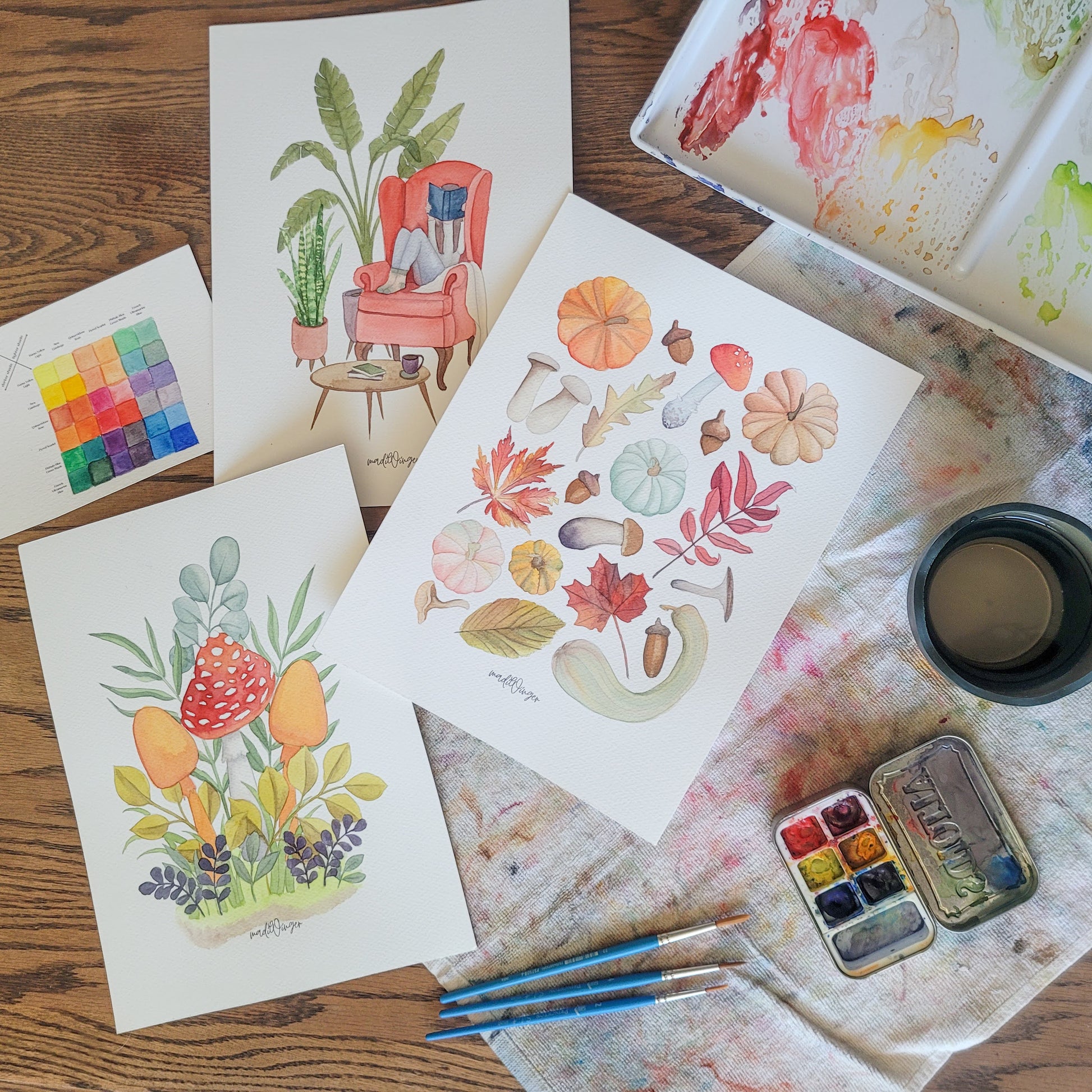 - 3 Unique Designs created by Madi and printed on high quality watercolor paper. The designs are 9x12in.
