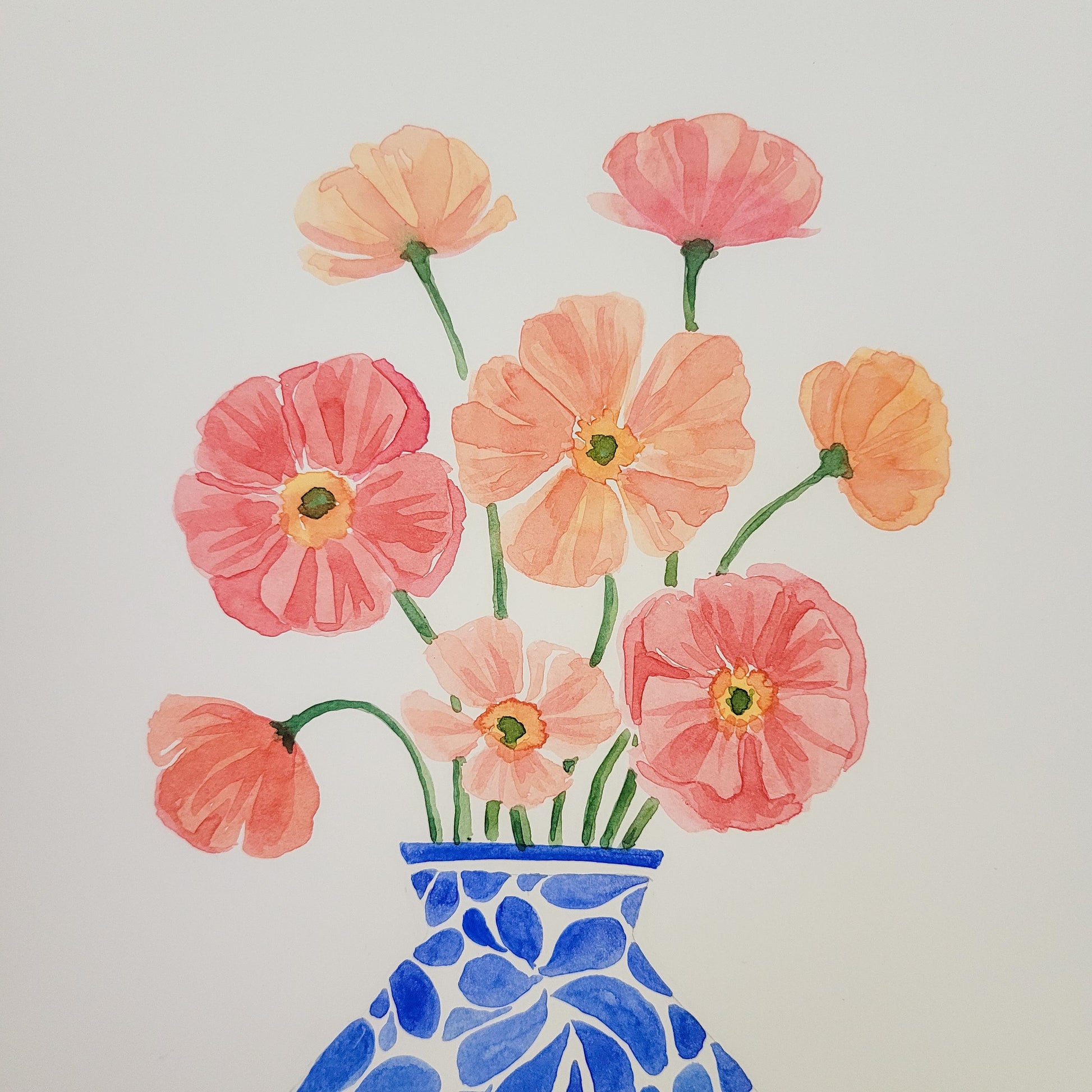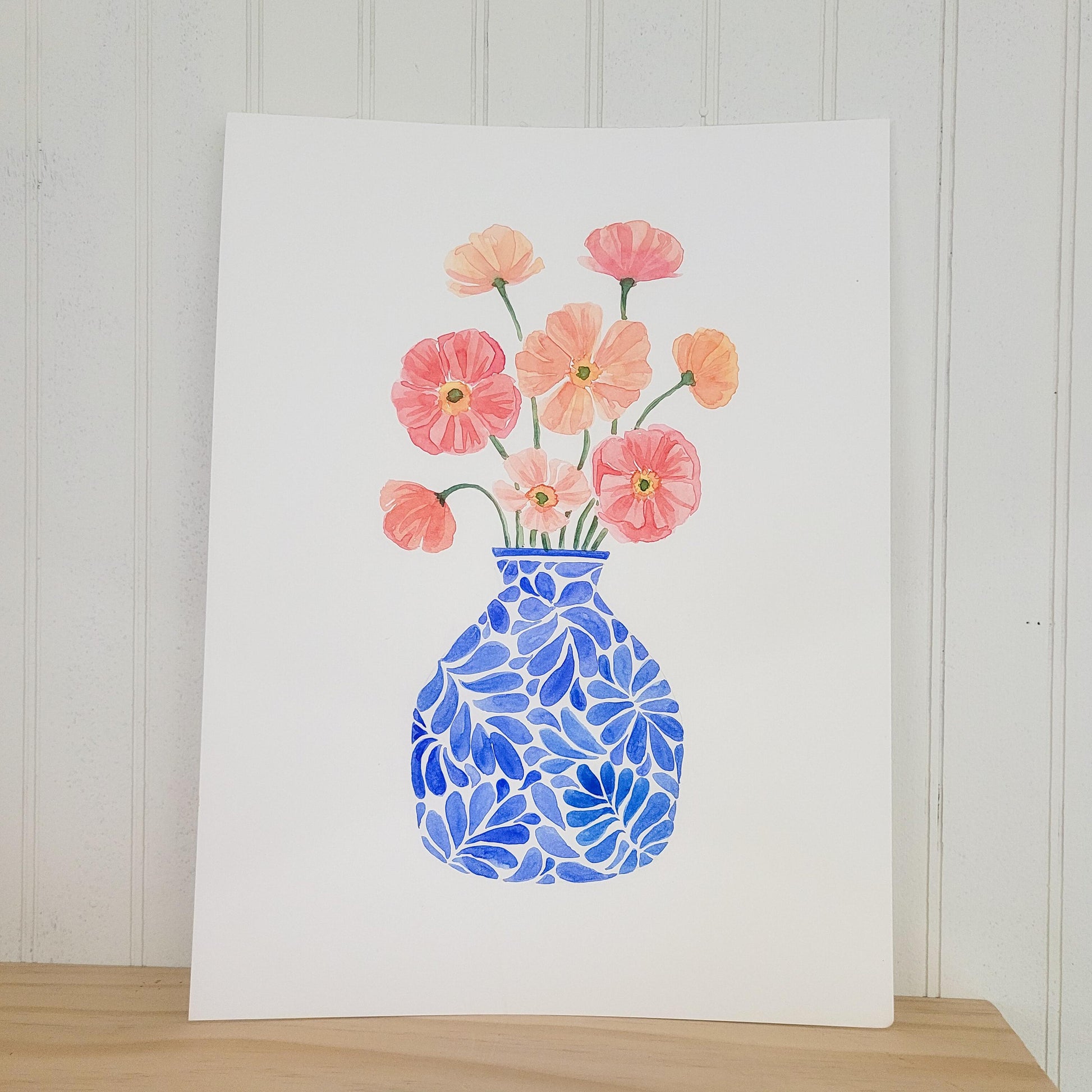 This original painting will set the scene for bright summery afternoon! Hang it up and enjoy an ode to the classic vintage style vase, with the added beauty of Iceland poppies you can't kill.