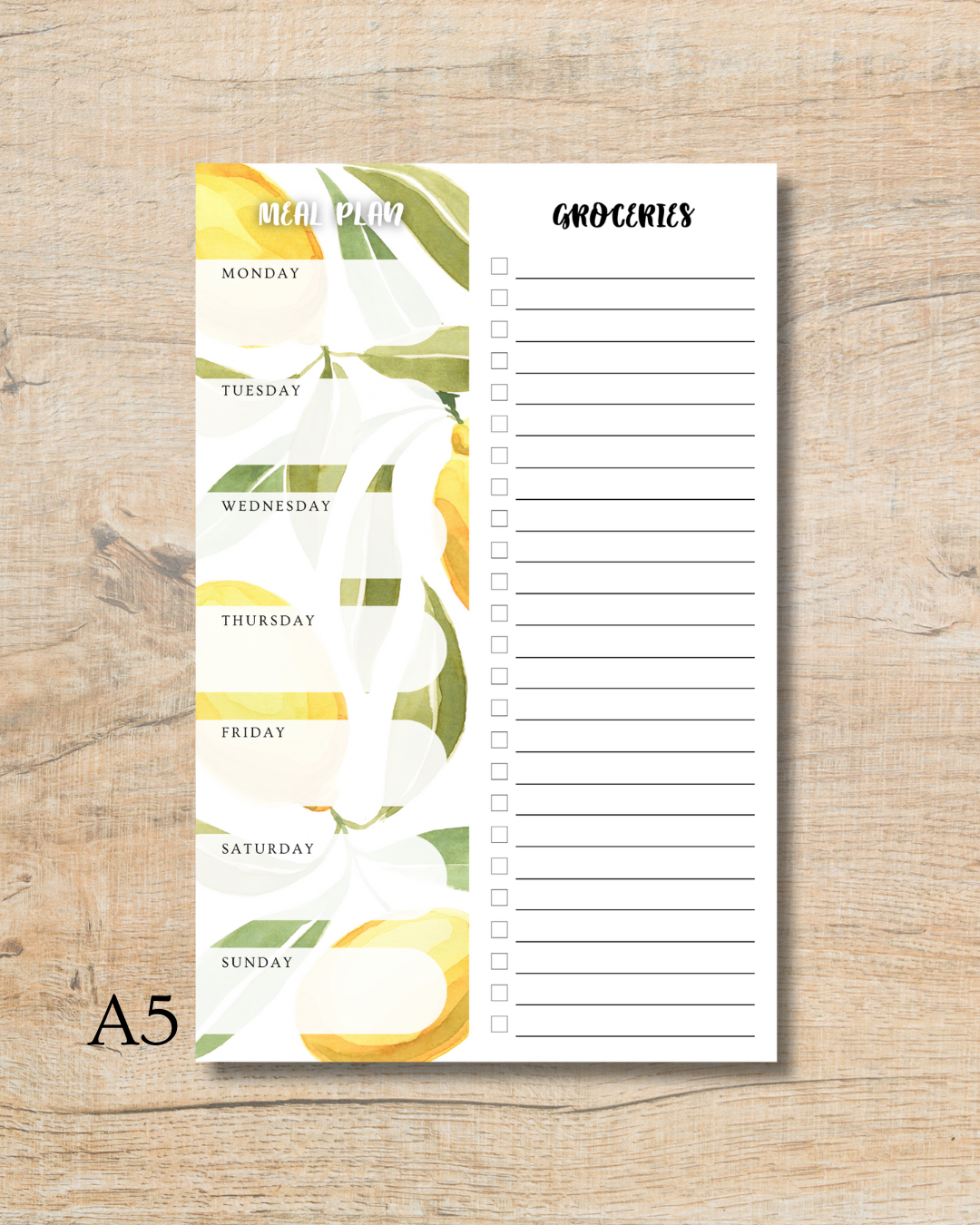 Lemons Meal Plan list