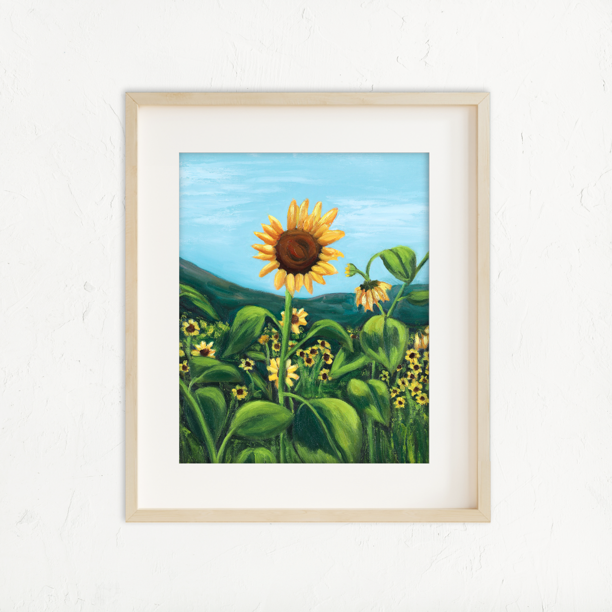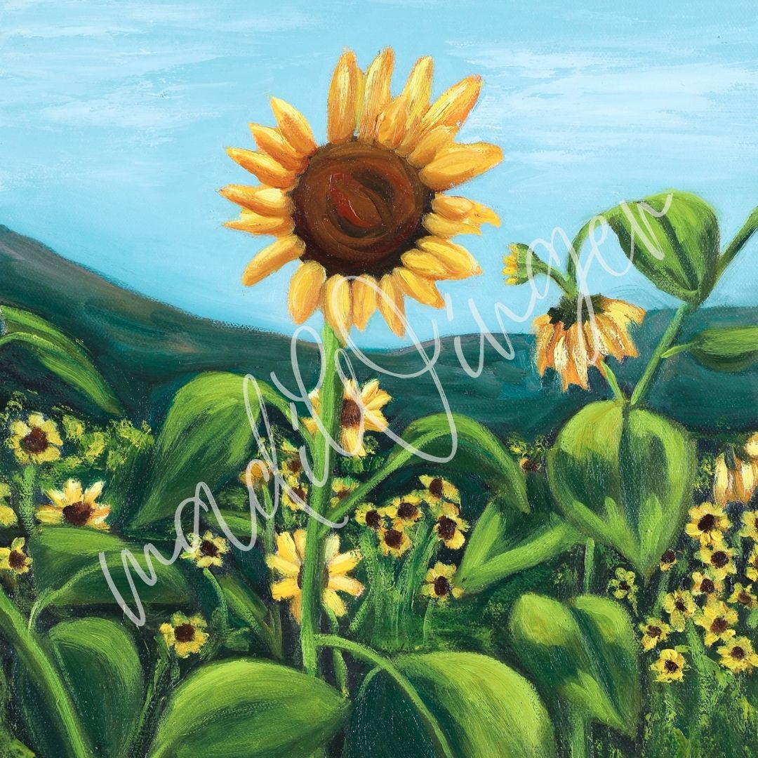 This piece was inspired from a late summer bike ride past an isolated sunflower field. My hope is that it inspires joy.