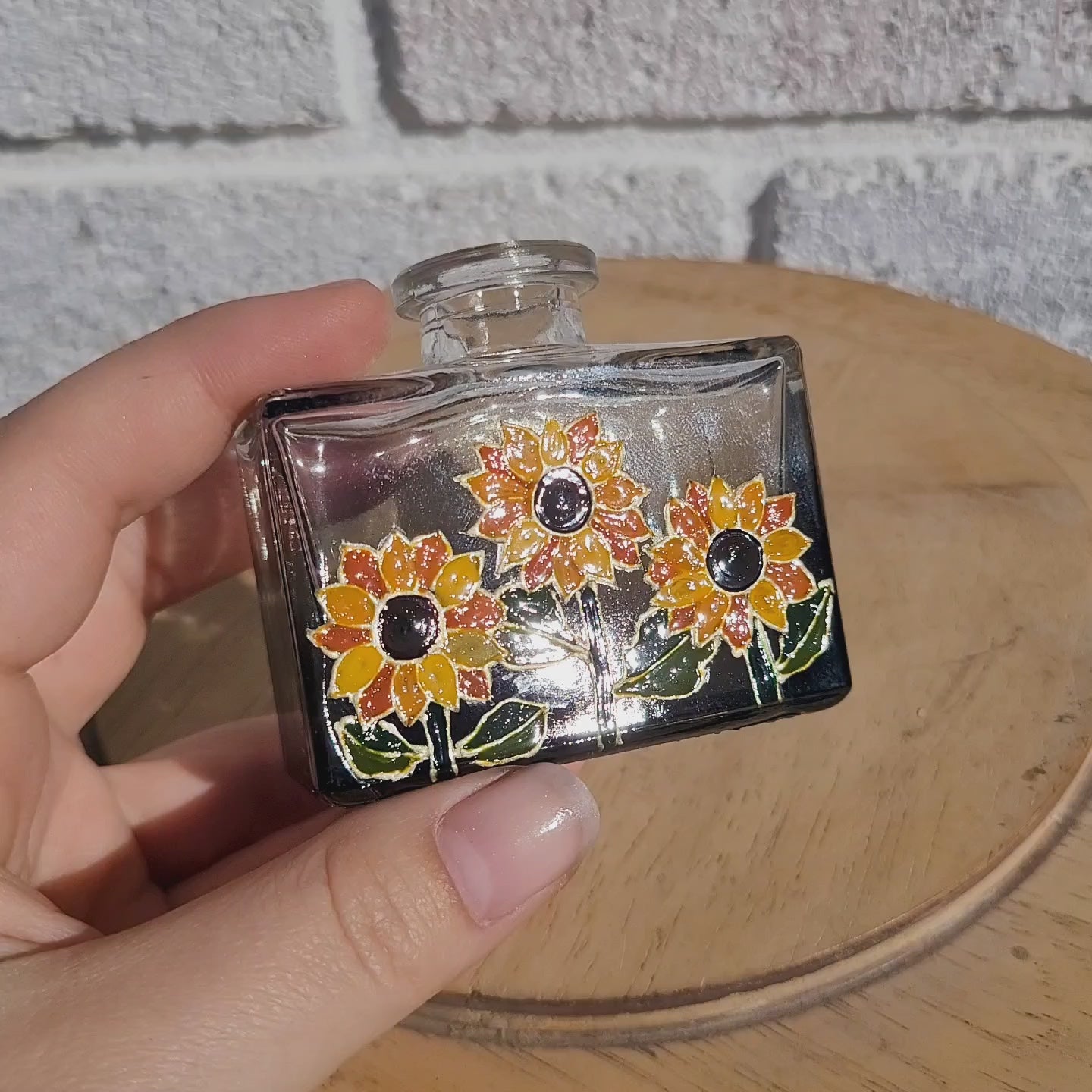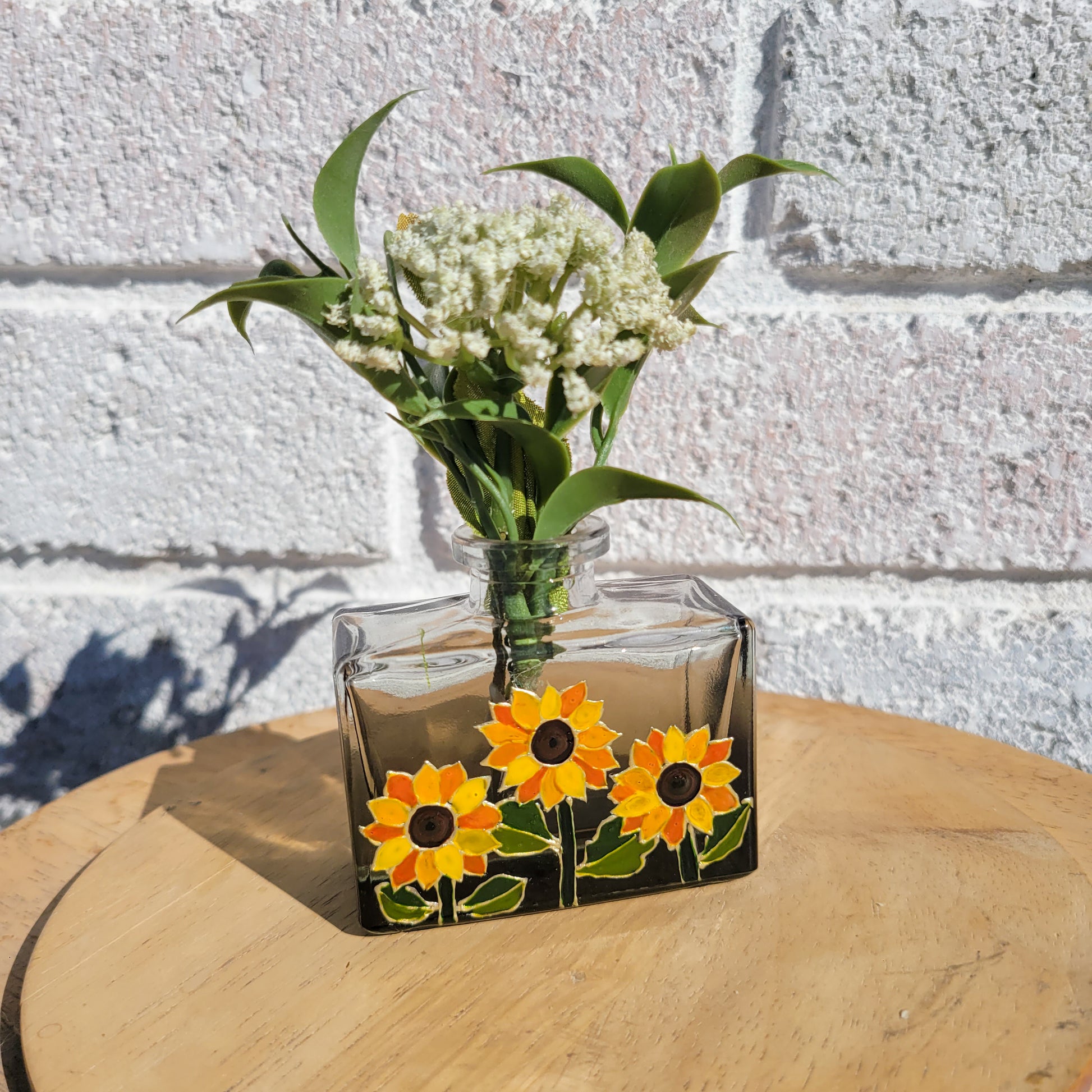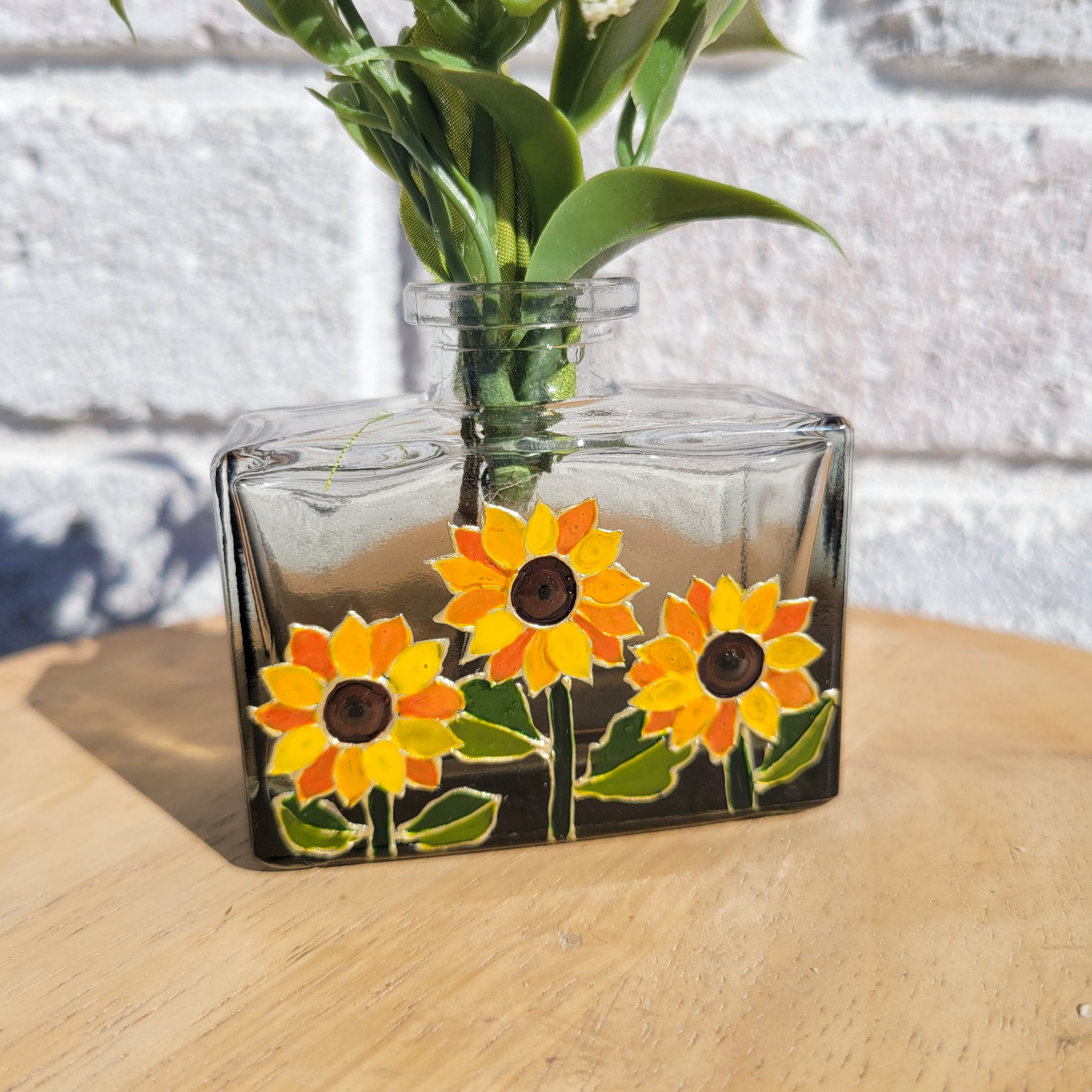 Green ombre vase with sunflowers.