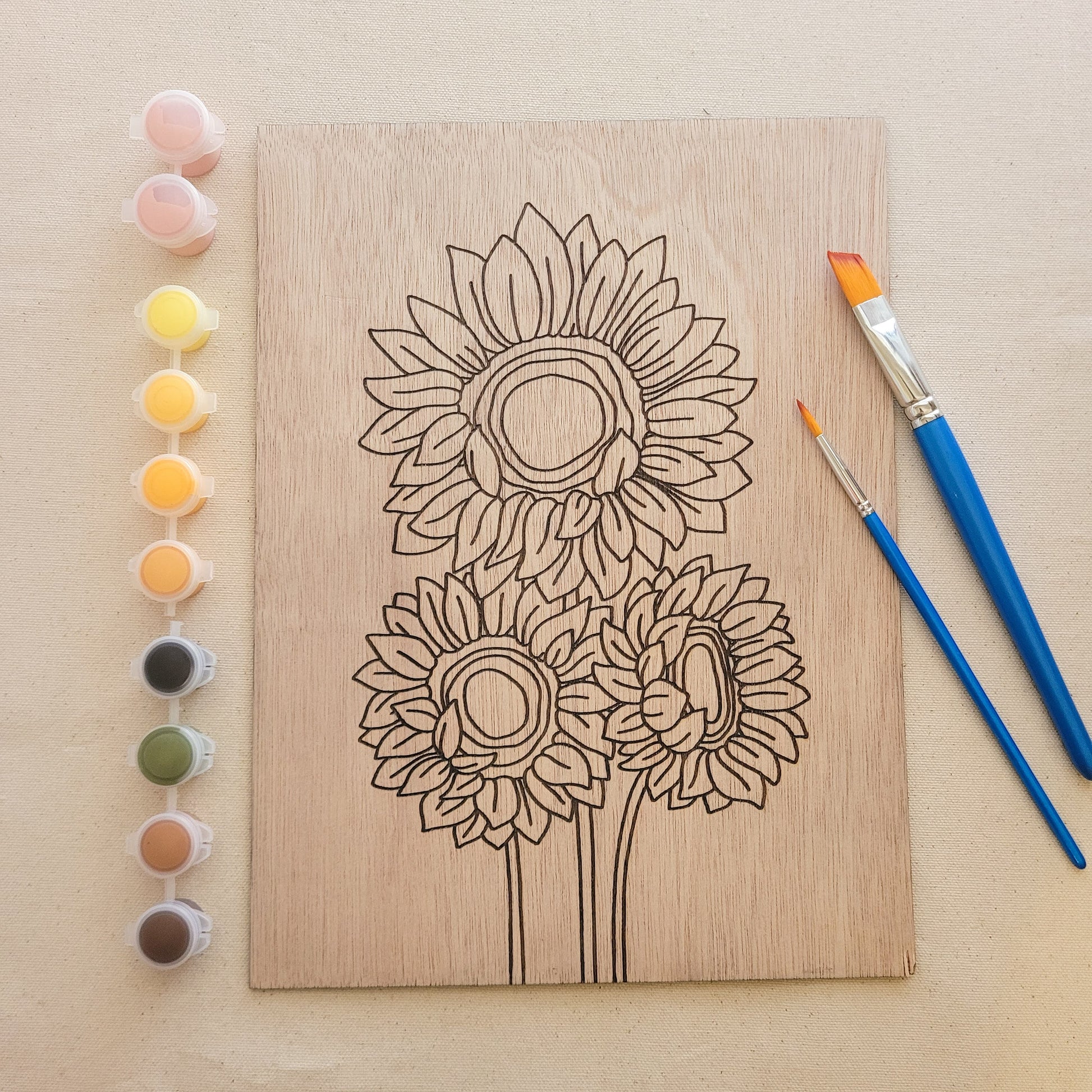 Included is a wood panel with an etched design and all the supplies you need to paint. This kit includes three brushes of different sizes, paints, an example of the finished piece, and sealer to protect your piece!