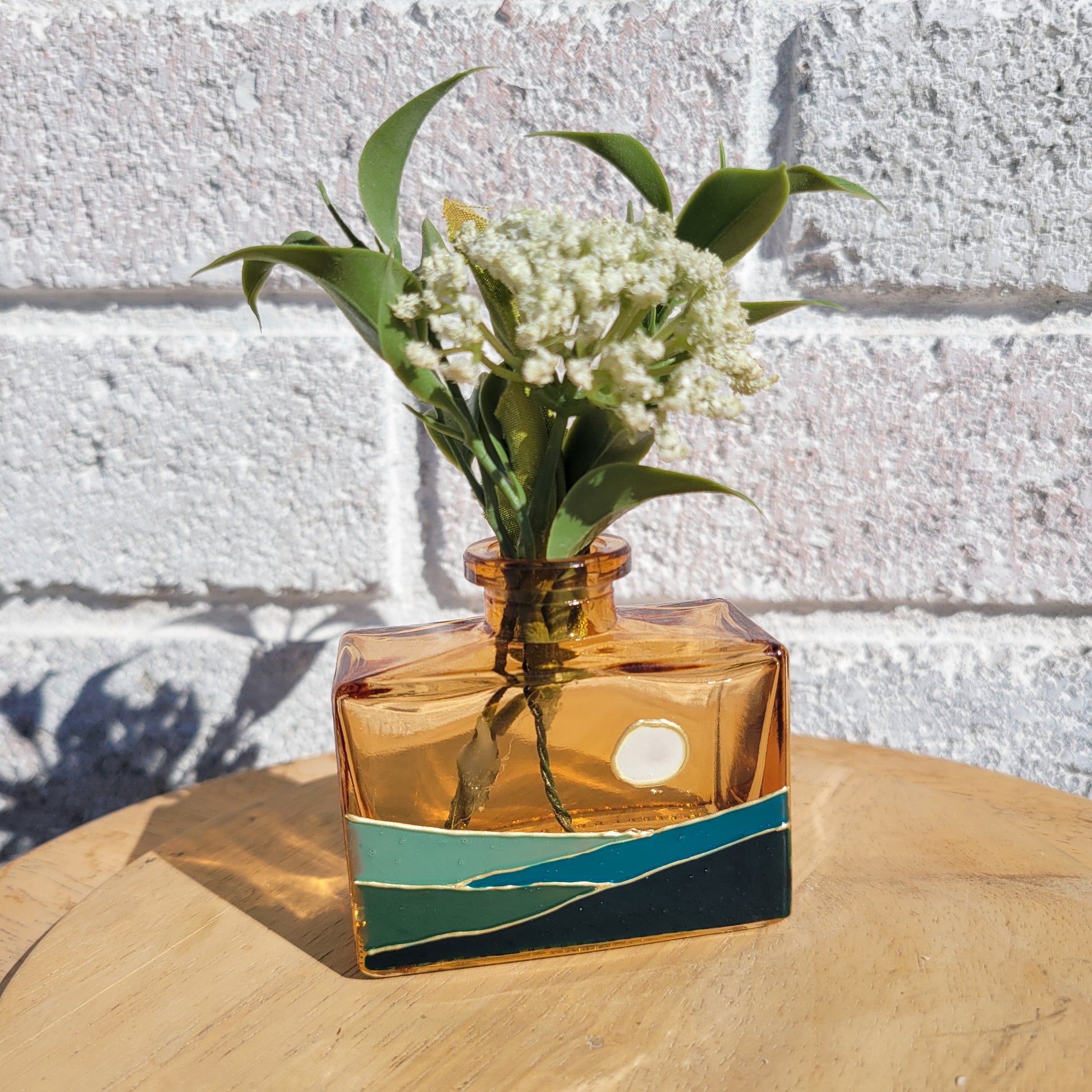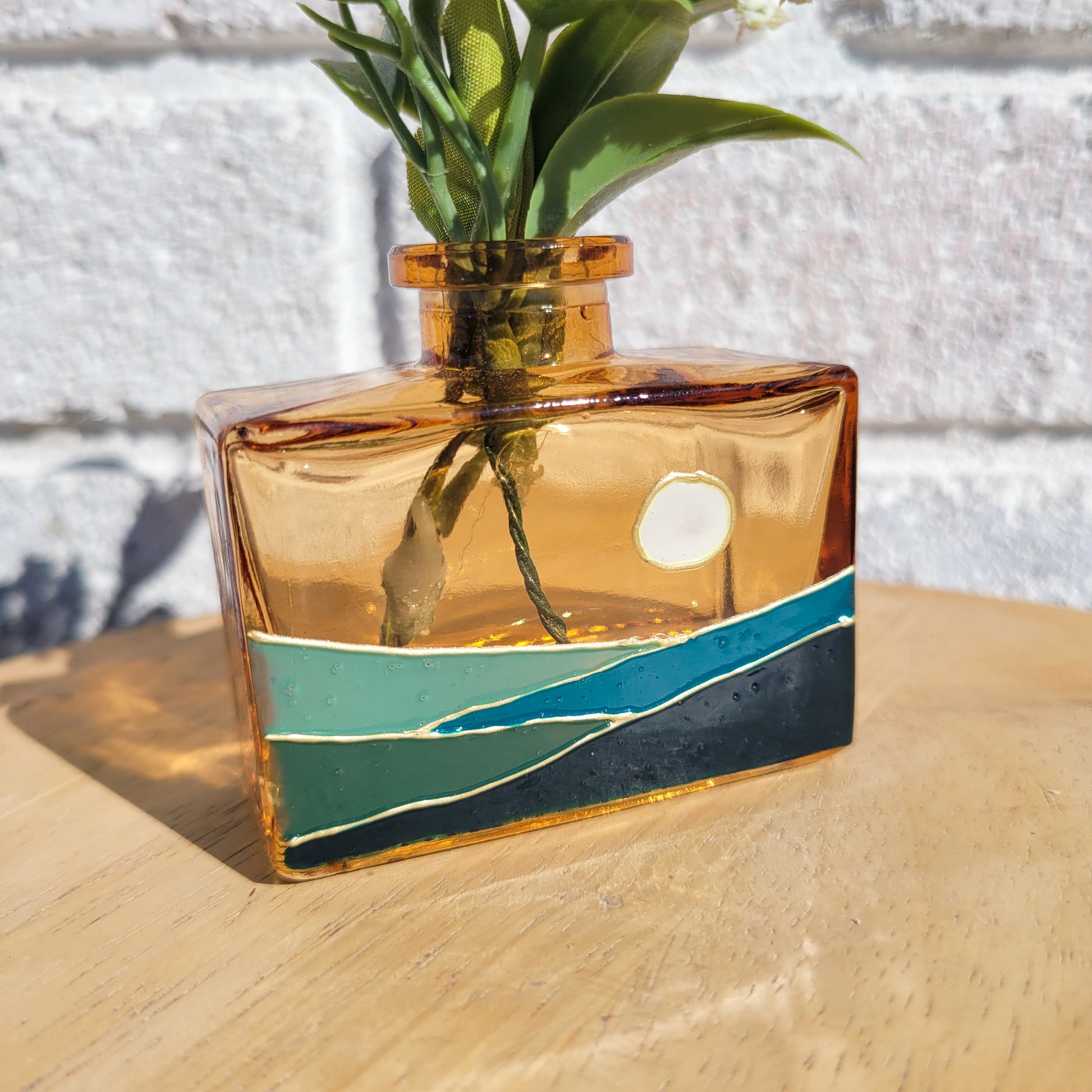 Amber vase with an ombre landscape.